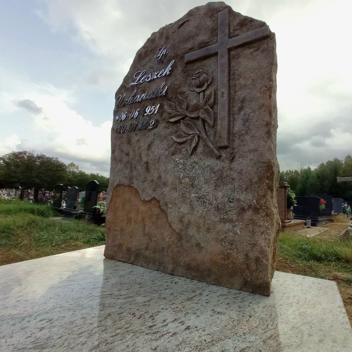 Tego typu pomniki wykonywane są z naturalnych, nieobrobionych głazów lub obrobionych według życzenia klienta. Możemy wypolerować wybrany fragment głazu i np. umieścić na nim litery ze stali nierdzewnej. Skała lub głaz ma oryginalną formę, oczywiście uzależnioną od Państwa koncepcji, wizji i wymagań. Nasi doradcy chętnie podpowiedzą Państwu w wyborze i udzielą wskazówek. Często płyta pozioma może być wyszlifowana/polerowana, zaś pionowa, na której zazwyczaj umieszcza się napis zostaje w naturalnej, nietypowej formie. Napis można umieścić również na poziomej płycie, istnieje pełna dowolność. Tego typu nagrobki skałkowe są często wybierane dla osób ze świata sztuki, czy też zafascynowanych przyrodą, którzy chcieliby pochówku najbliższego naturze.